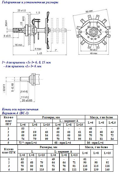 Описание переключателя галетного ПГК-4П2Н-К: