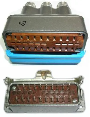 Вилки и розетки имеют металлический литой или пластмассовый кожух с прямым и угловым выходом кабеля и фиксирующие замки. Покрытие контактов серебро и олово-висмут.