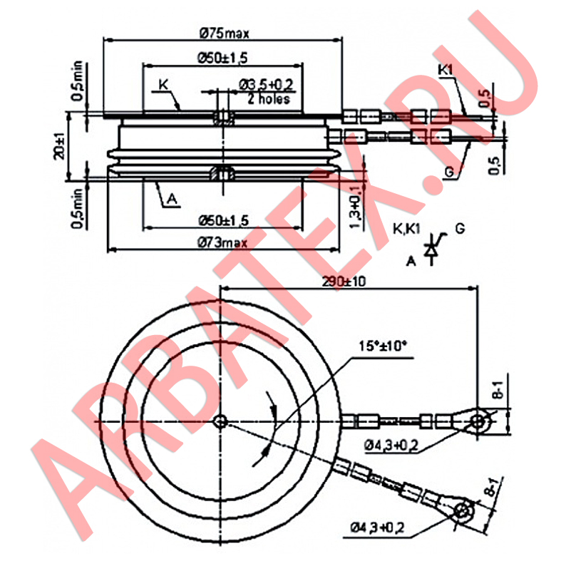 Масса тиристора не более 480 г.