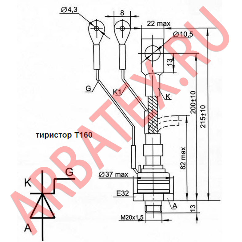 Т160-2 - низкочастотный тиристор штыревого исполнения.